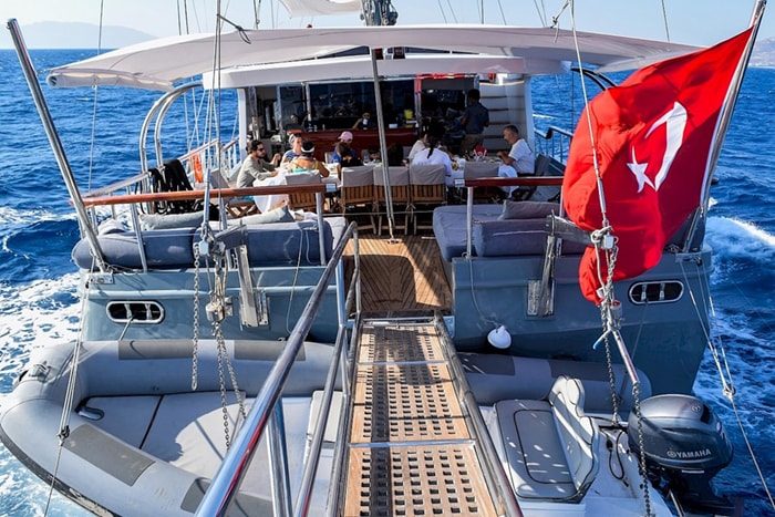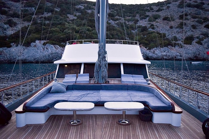 Yacht VIRTUOSO is a 100’ luxury sailing gulet launched in 2003. She was designed and built in Turkey specifically for luxury charters, and features naval architecture by Vento Design. Her 2017 refit made her more elegant, with new decor, expansive decks, a flybridge, and ample staterooms.