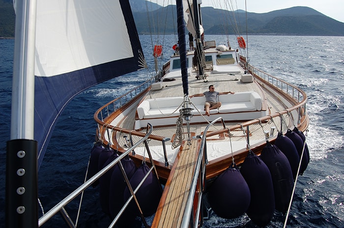 Active charter guests onboard will be pleased to know that this yacht boasts a large collection of water sports toys, from water skis for children and adults, windsurfing boards, wakeboards, snorkeling gear, fishing gear and more. Papa Joe is an ideal yacht for sailboat charters in the East Mediterranean.