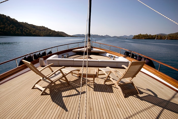 Outside, the exterior decks on Yacht Papa Joe are equally impressive. On the aft deck, guests will find an al fresco dining area with a large table for up to 12 guests – perfect for a sophisticated meal under the stars. Nearby, a relaxed seating area with plush cushions and deck chairs is perfect for an afternoon outdoors. Wide walkways lead to an expansive foredeck with sun beds, a welcoming sitting area and plenty of areas to tan or take in beautiful views under the stars.