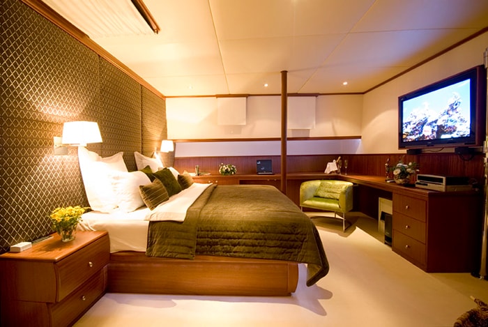 King Master stateroom with large sofa and en suite.