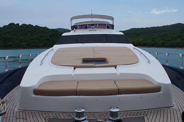 Exterior decks aboard MIA KAI are great for entertaining and relaxation. Her flybridge is a focal point with its Spa Pool, barbecue, al fresco dining area and sunpads. The aft deck provides another outdoor entertaining option for meals, snacks or cocktails.