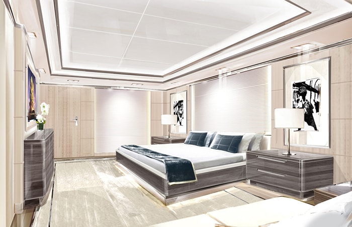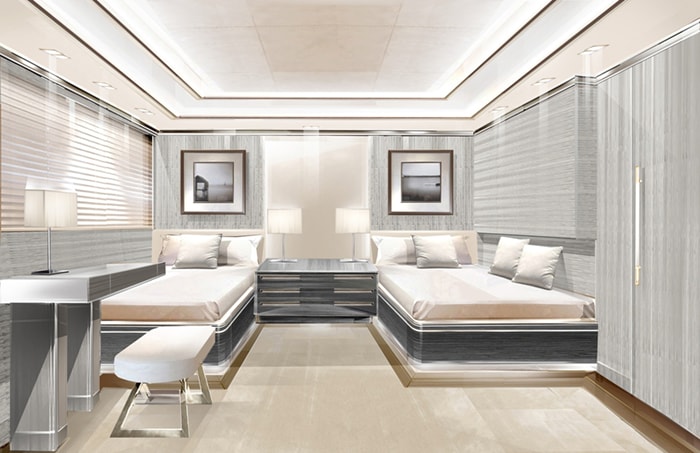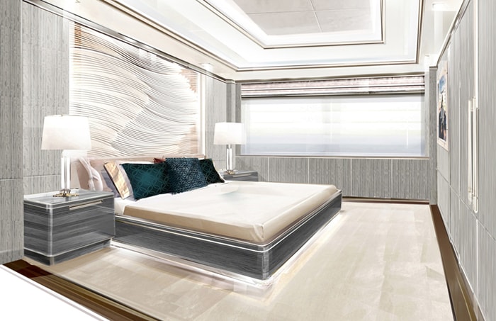 Yacht O’PTASIA is a display of contemporary opulence at its finest. Her sheer size and magnificence allow her to harmoniously house up to 12 guests. With expansive and sleekly-designed salons on the main and upper decks, entertaining and sharing drinks with family and friends is taken to a whole new level over windows framing the most picturesque sea-lined sunsets. She even hosts a cinema room as an extension of the VIP cabin, and an office in the master suite.