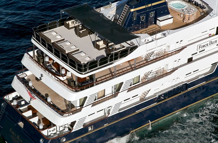 FORCE BLUE is a 207’ explorer yacht that was built by Royal Denship in 2002 and refit in 2009. Her naval architecture is by Tom Fexas and her interior design is by Celeste Dell’Anna. This spectacular charter yacht boasts massive deck space, luxury amenities, and a wide selection of entertainment options.
