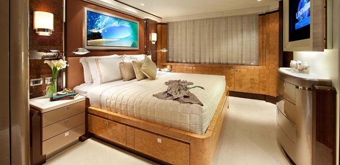 Master King Stateroom with office, walk-in closets, and His & Hers en suite located on the bridge deck.
