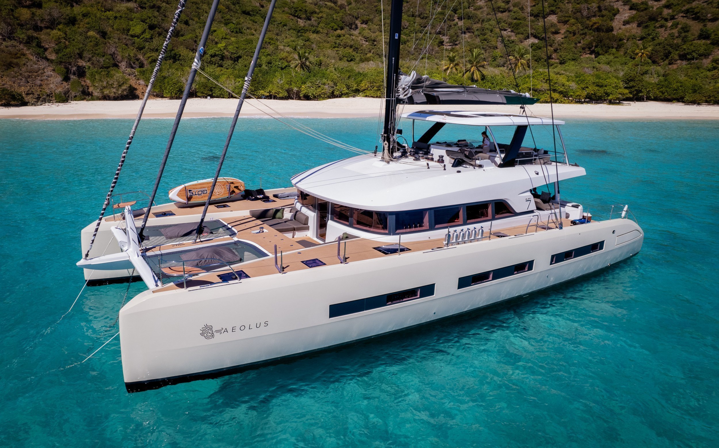 Yacht AEOLUS, meaning “The Keeper of the Winds,” embodies the essence of freedom and refinement at sea. This 77-foot Lagoon SEVENTY7 represents the height of modern catamaran design, seamlessly blending innovation, performance, and elegance. Every detail has been thoughtfully considered to create an atmosphere where luxury feels effortless.
