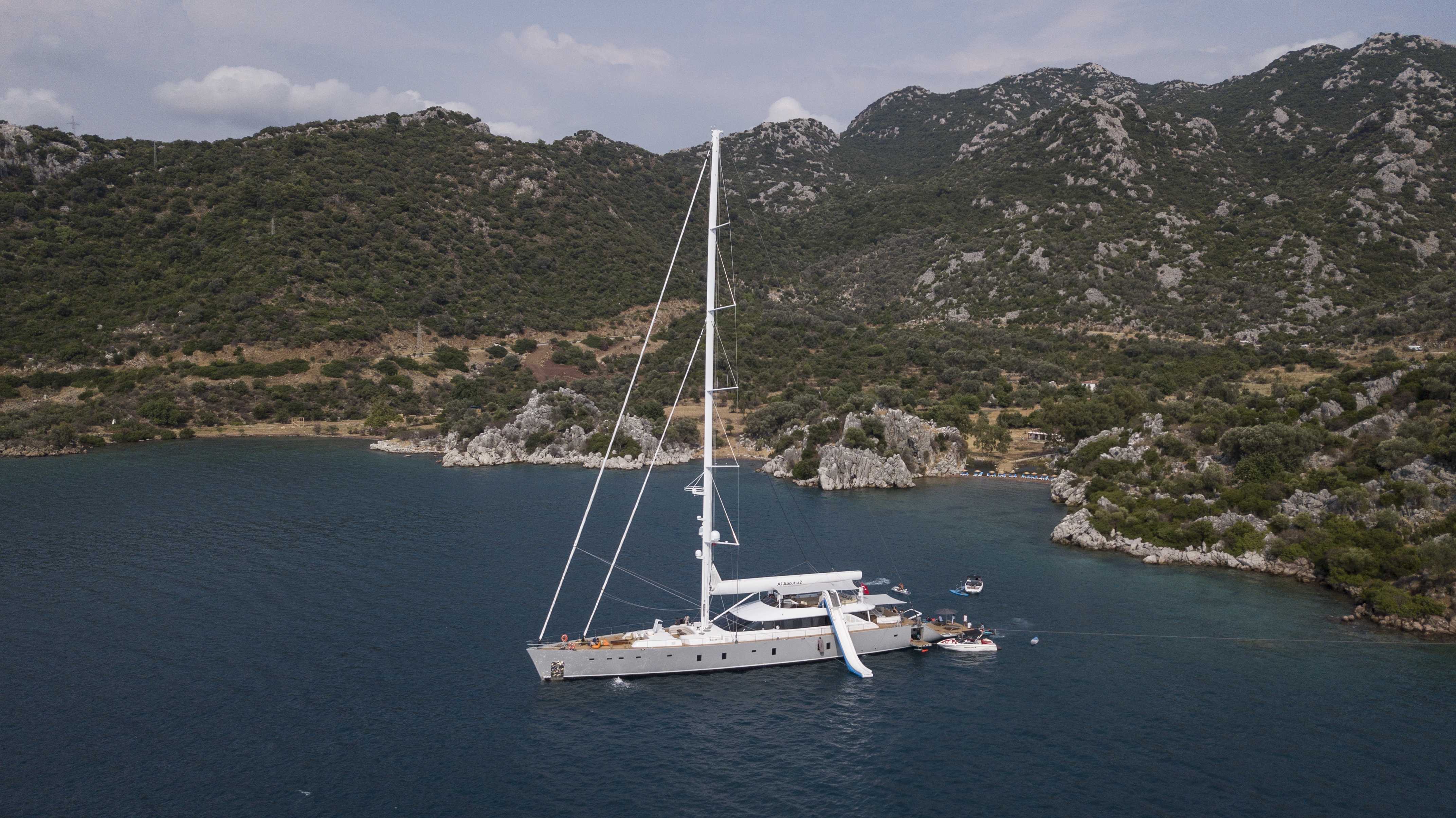 At 164ft, Yacht All About U 2 offers the perfect fusion of sailing tradition and modern superyacht comfort. Delivered in 2019 by ADA Yacht Works and styled by Ginton Naval Architects, she features a steel hull and aluminium superstructure that ensure both poise and durability on the open sea.
