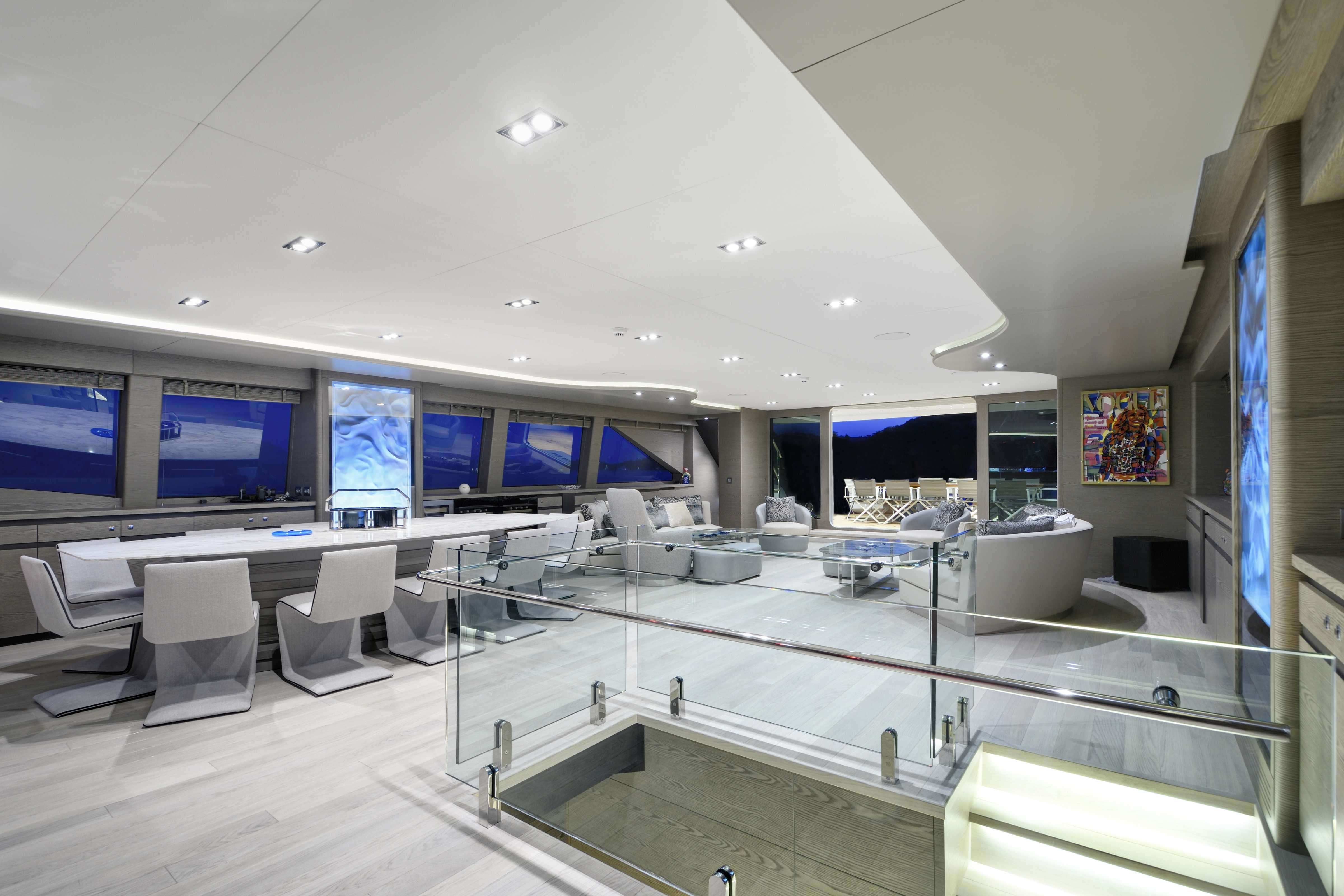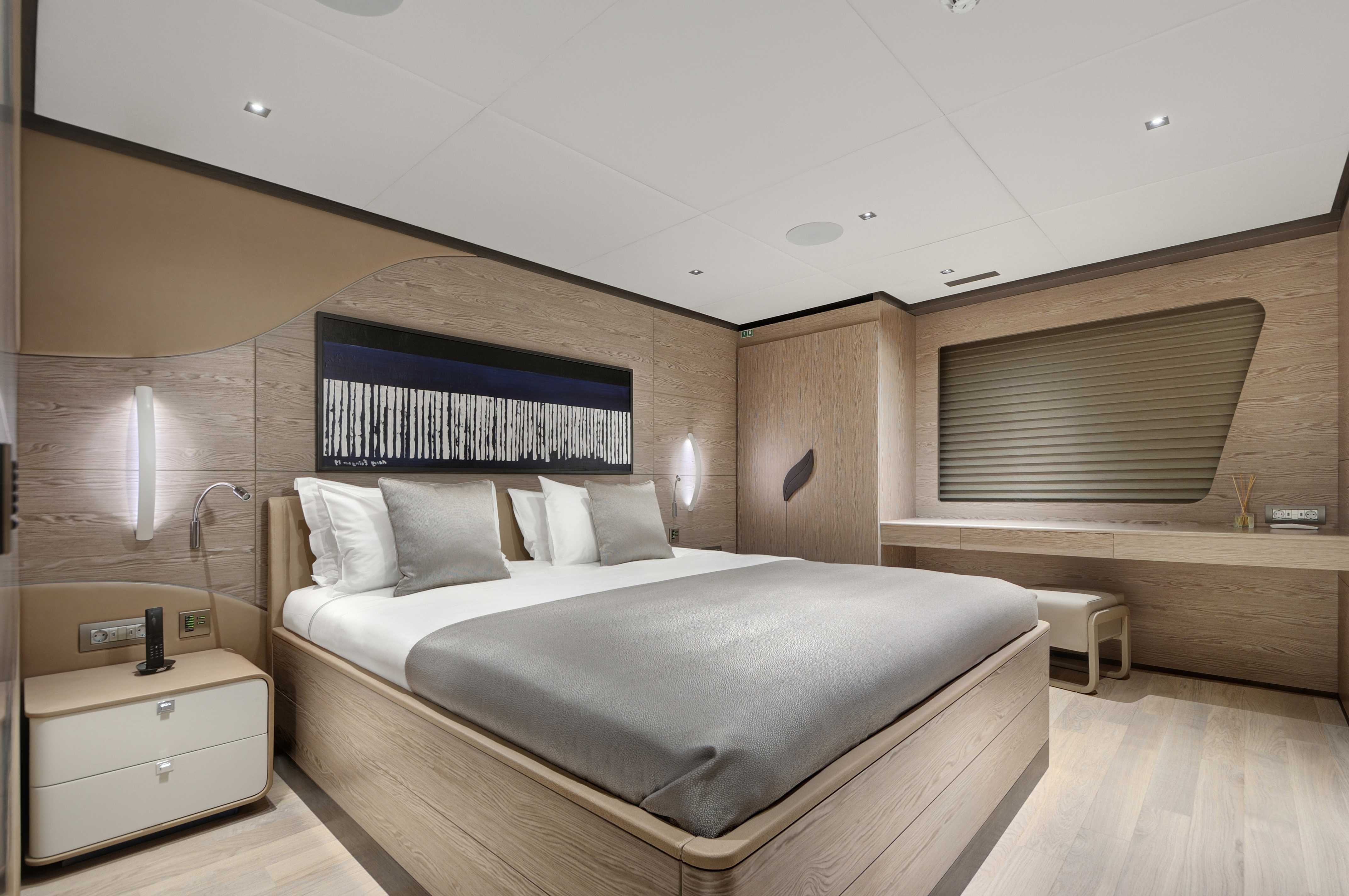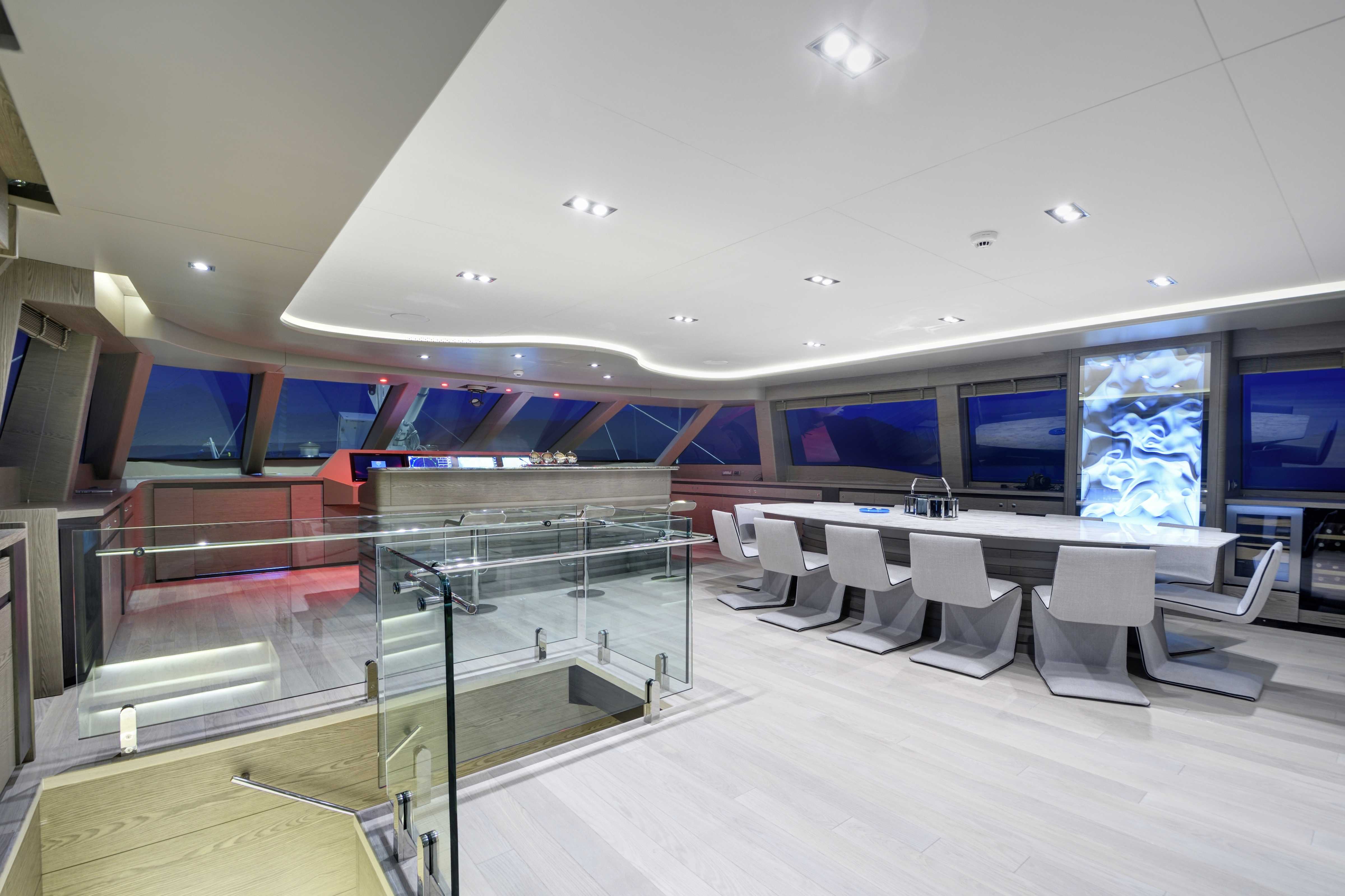 Onboard, six spacious cabins—including a full-beam master suite and generous VIP quarters—accommodate up to twelve guests in refined comfort. The main salon flows into the aft deck, with large windows and a thoughtful open layout that make the space feel bright and seamlessly connected to the outdoors. Guests will appreciate the clean design, high-quality finishes, and contemporary aesthetic that make it easy to relax or entertain.