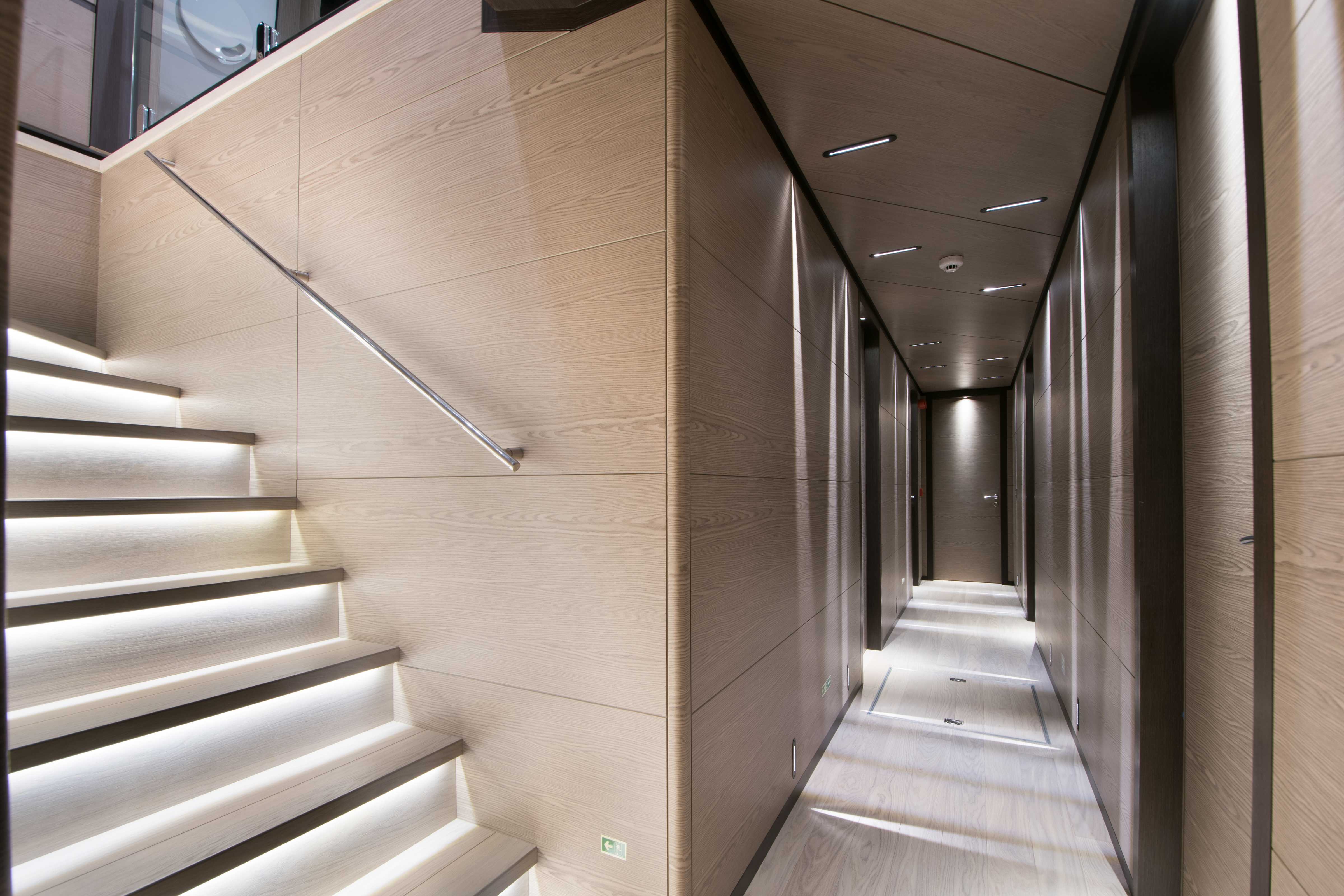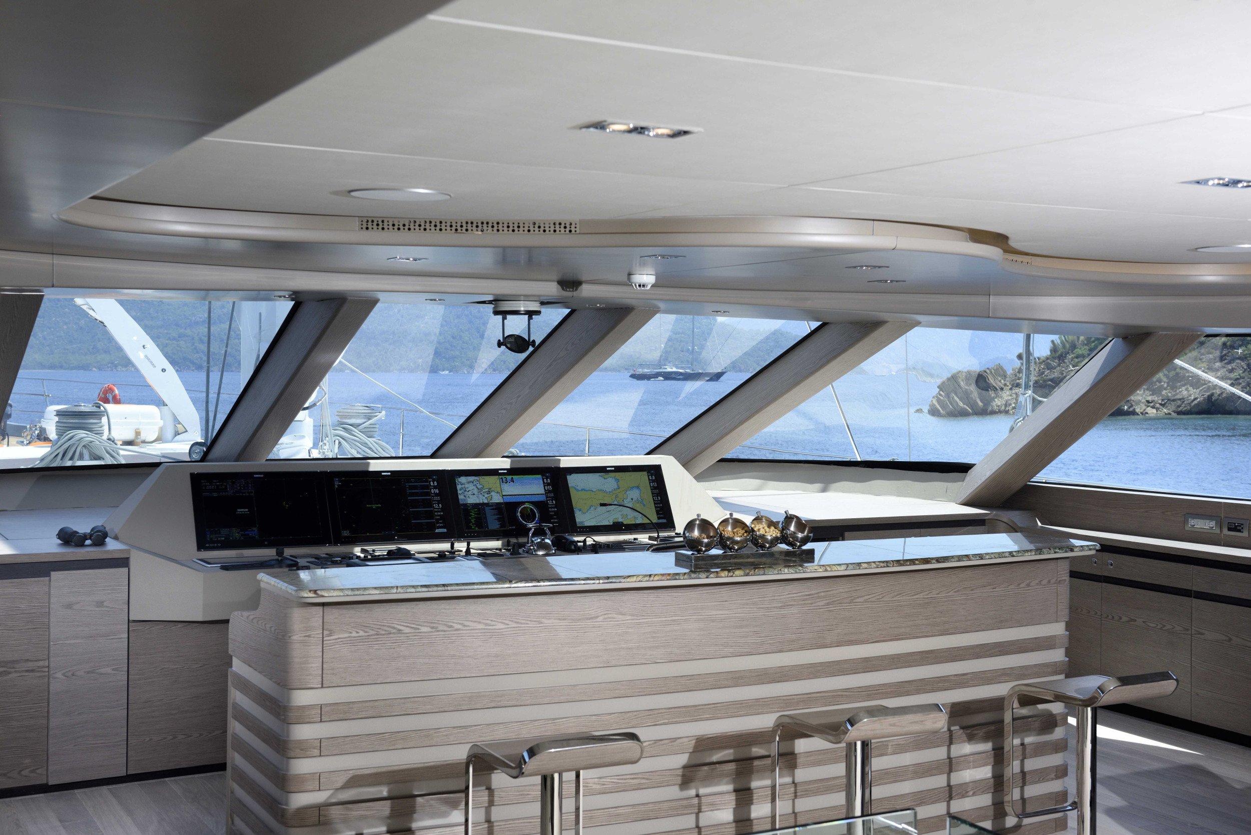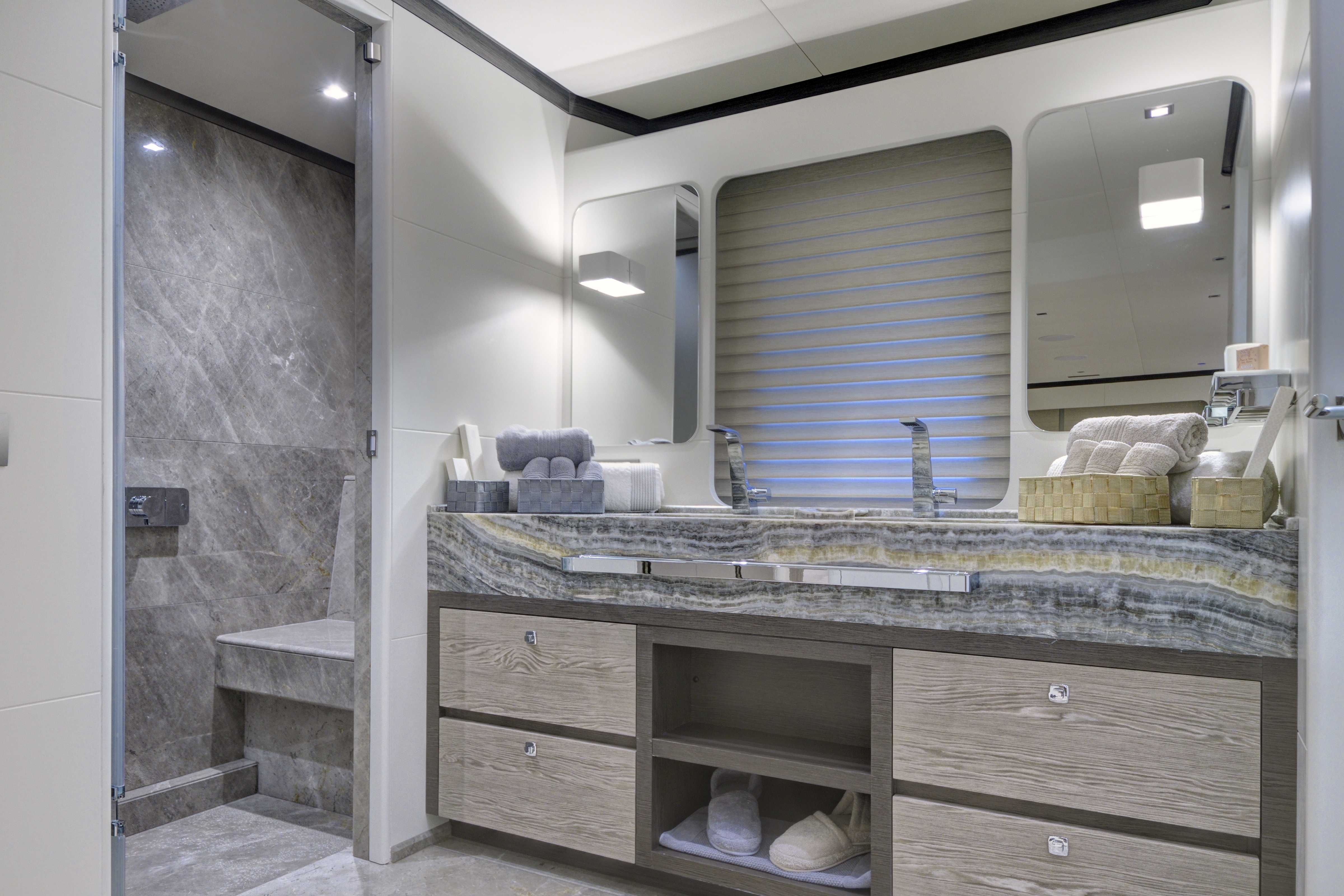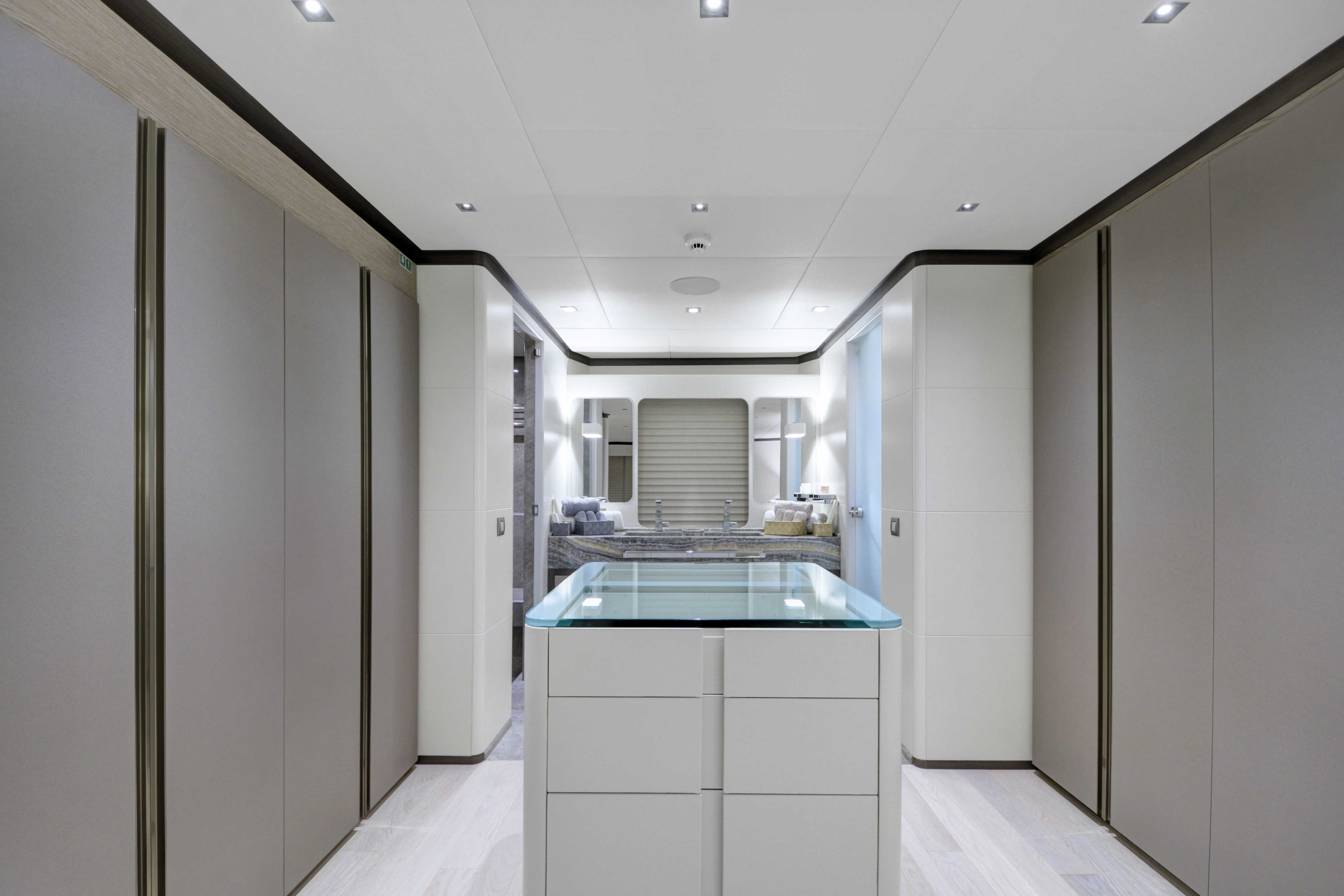 Onboard, six spacious cabins—including a full-beam master suite and generous VIP quarters—accommodate up to twelve guests in refined comfort. The main salon flows into the aft deck, with large windows and a thoughtful open layout that make the space feel bright and seamlessly connected to the outdoors. Guests will appreciate the clean design, high-quality finishes, and contemporary aesthetic that make it easy to relax or entertain.